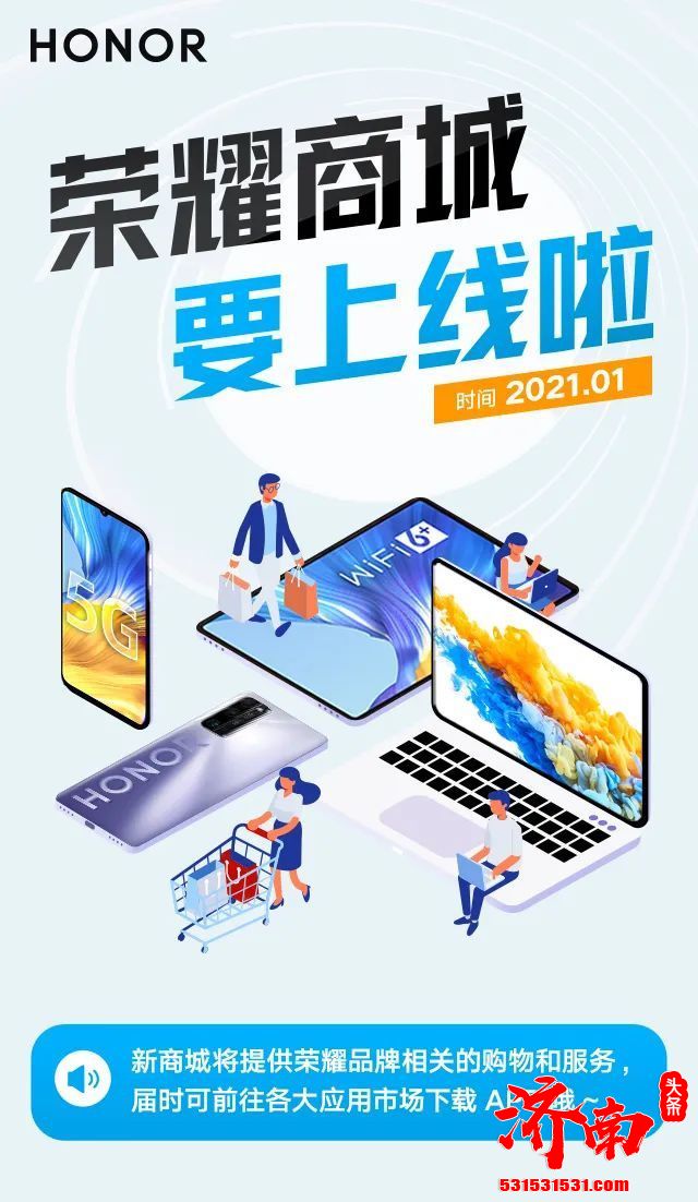 荣耀方面昨日宣布,荣耀商城将于2021年1月初全新出发。