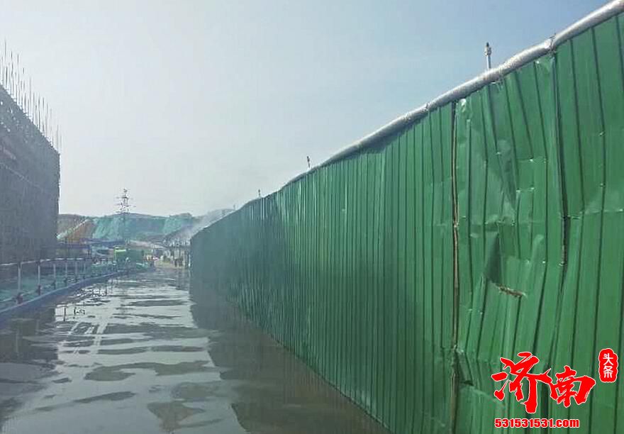 在山东出版集团图书展示楼项目现场,记者看到现场物料、渣土严密覆盖,行车路面洒水降尘,严格落实防尘降尘措施。施工方中建八局一公司济南公司党支部书记曹洪骏向记者介绍,由于项目周围有居民楼,为减少噪音污染,他们专门建立了6米高、120米长的隔音墙。随行的市中区渣土综治办负责人向记者介绍,该项目是济南市重点项目,在扬尘防治以及渣土处理方面起到了模范带头作用,值得其他项目学习。