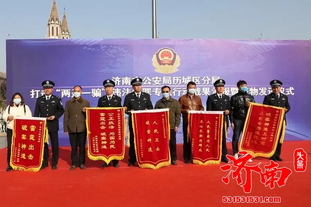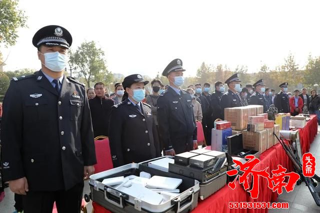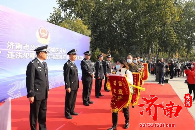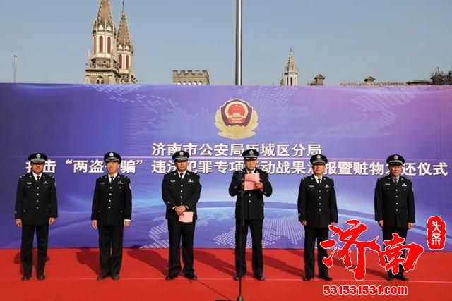 历城区公安分局政委张福新主持,陈晨局长代表分局党委向到场群众报告了专项行动开展以来全区公安机关严厉打击“两盗一骗”犯罪活动的工作进展成效。