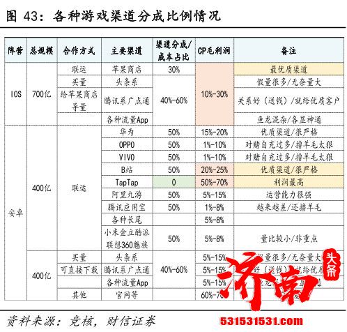 对于开发者来说,过高的渠道分成比例带来的直接影响就是毛利润的减少。从财信证券研报可以看出,如果与华为等手机厂商合作,CP(内容提供商)毛利润在20%以下,如果与taptap、B 站等社区分发平台合作,CP毛利润最少也有20%。