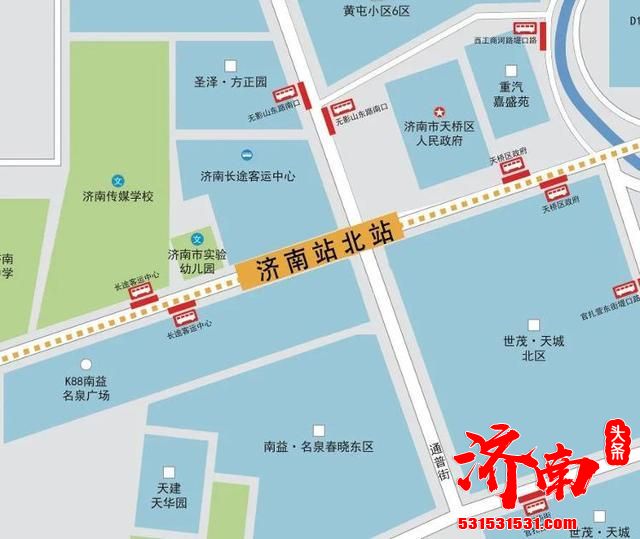 B口:胶济铁路南侧,距离舜华北路500米 (车站西)