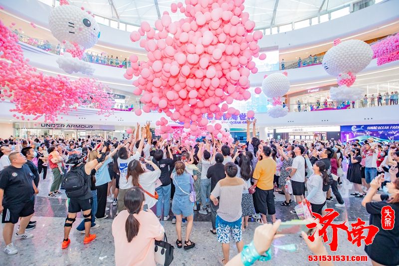 满月庆怎么会少了一场梦幻气球雨呢?活动当晚7点,济南融创茂中庭上万只粉色气球准时从天而降,开启全城惊喜。巨型爱心气球自下而上飘浮到空中,唯美梦幻的场景吸引了很多游客拍照、拍视频留念。此外,早10点至晚8点的满额抓大奖-真人娃娃机体验同样人气火爆,引起了不少游客参与体验。