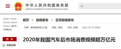 商务部发布 2020年我国汽车后市场消费规模超万亿元