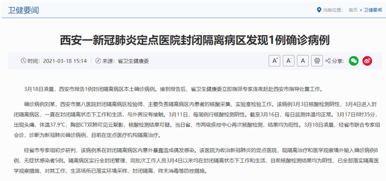 西安市报告现1例确诊病例:为封闭隔离病区检验师 3月4日起与外界无接触