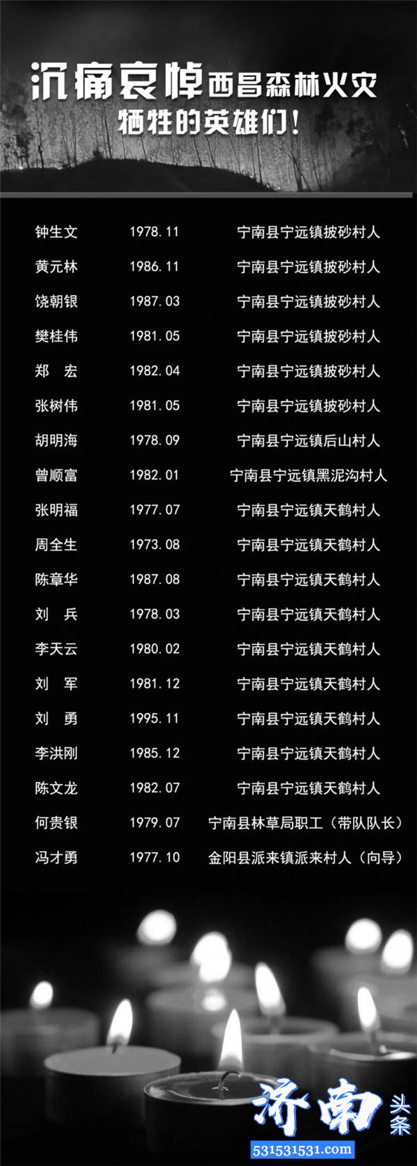 西昌市政府公布森林大火19名牺牲人员名单