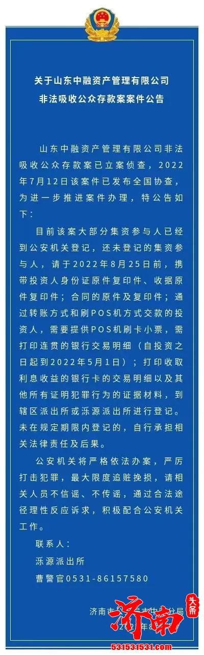山东中融资产管理有限公司非法集资案参与投资人尽快登记