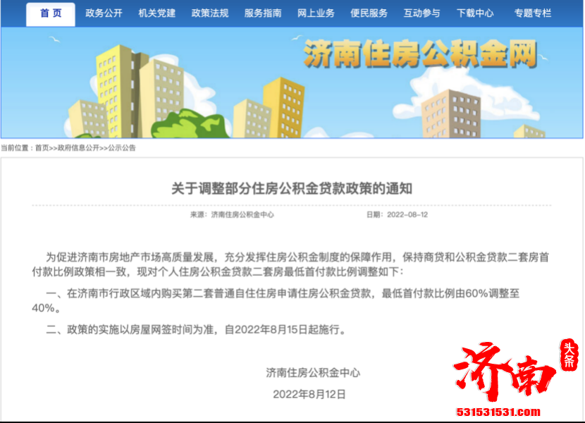 济南市第二套普通自住住房申请住房公积金贷款,最低首付比例调整至40%