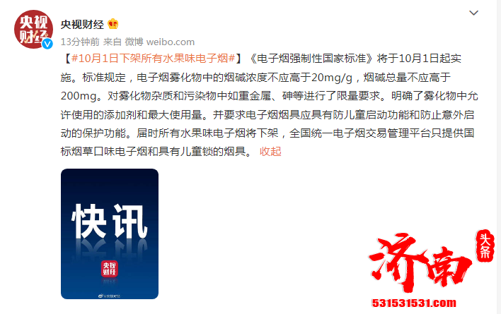 10月1日起所有水果味电子烟将下架 只提供国标烟草口味电子烟和具有儿童锁的烟具