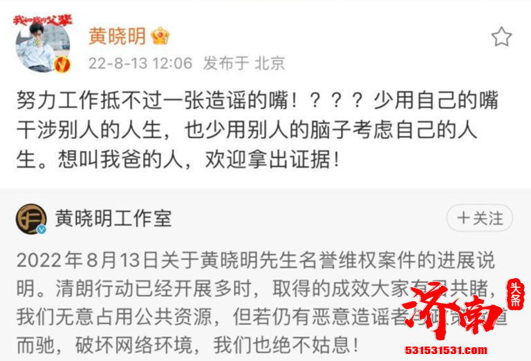 "黄晓明与他人有私生子"系谣言 本人发声:想叫我爸的人,欢迎拿出证据