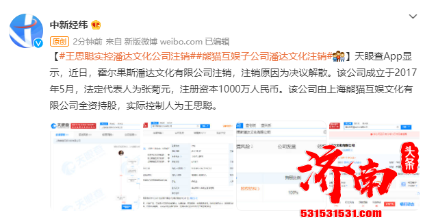 王思聪实控的霍尔果斯潘达文化有限公司决议解散并注销